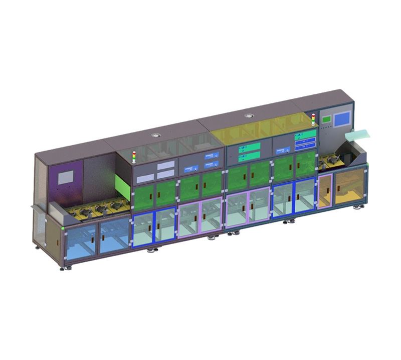 由待測產品搬送結構、檢測機構、數據處理裝置構成。人工把產品安裝到治具、隨工位移動、通過各工位的檢測機構、進行順序檢查。